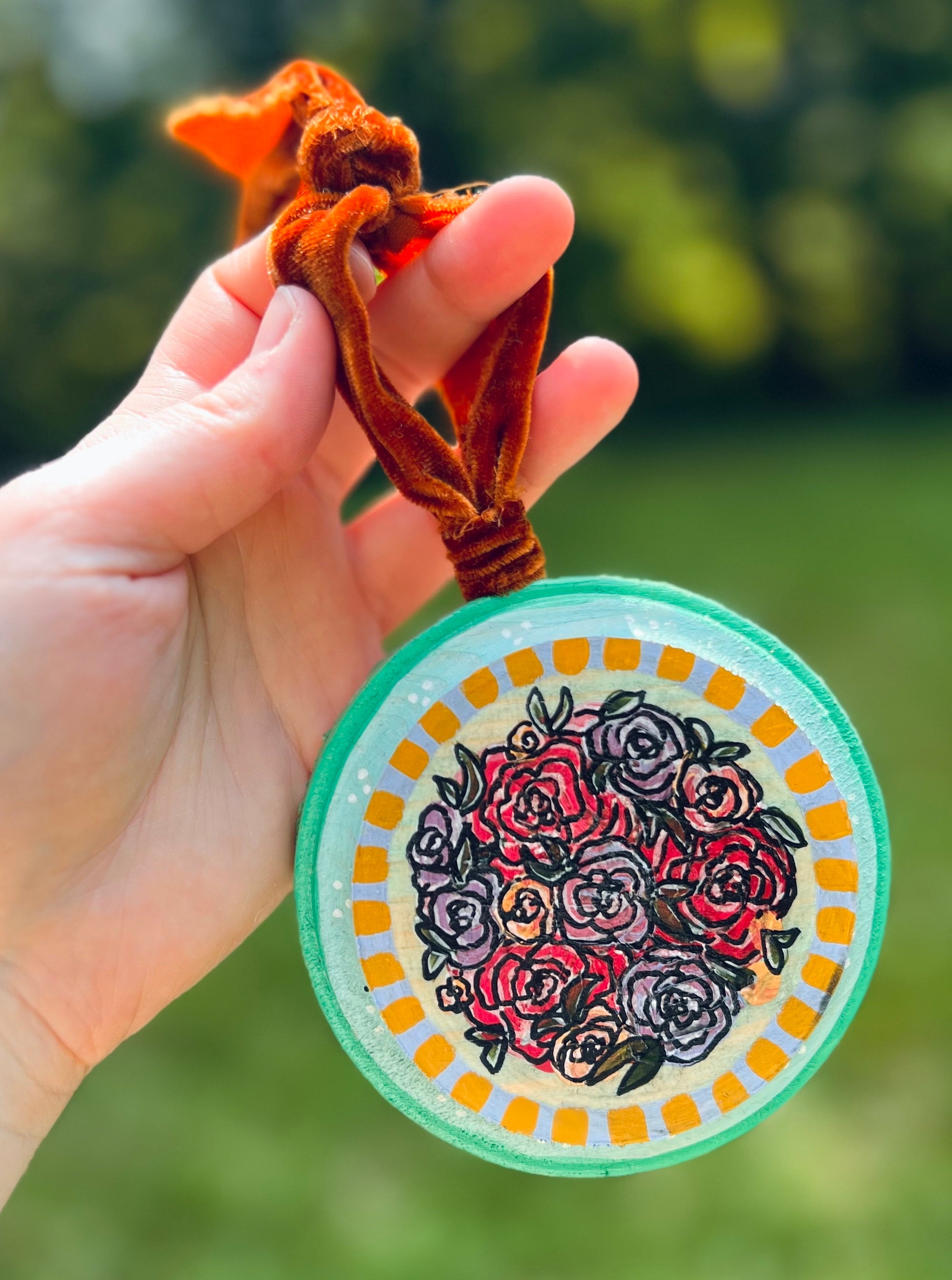 Add a splash of floral charm to your everyday •OR• holiday decor with our hand-painted wooden ornaments. Each piece is uniquely designed and crafted with an array of different colors, flowers, fruits, and warm designs... making them truly one of a kind!