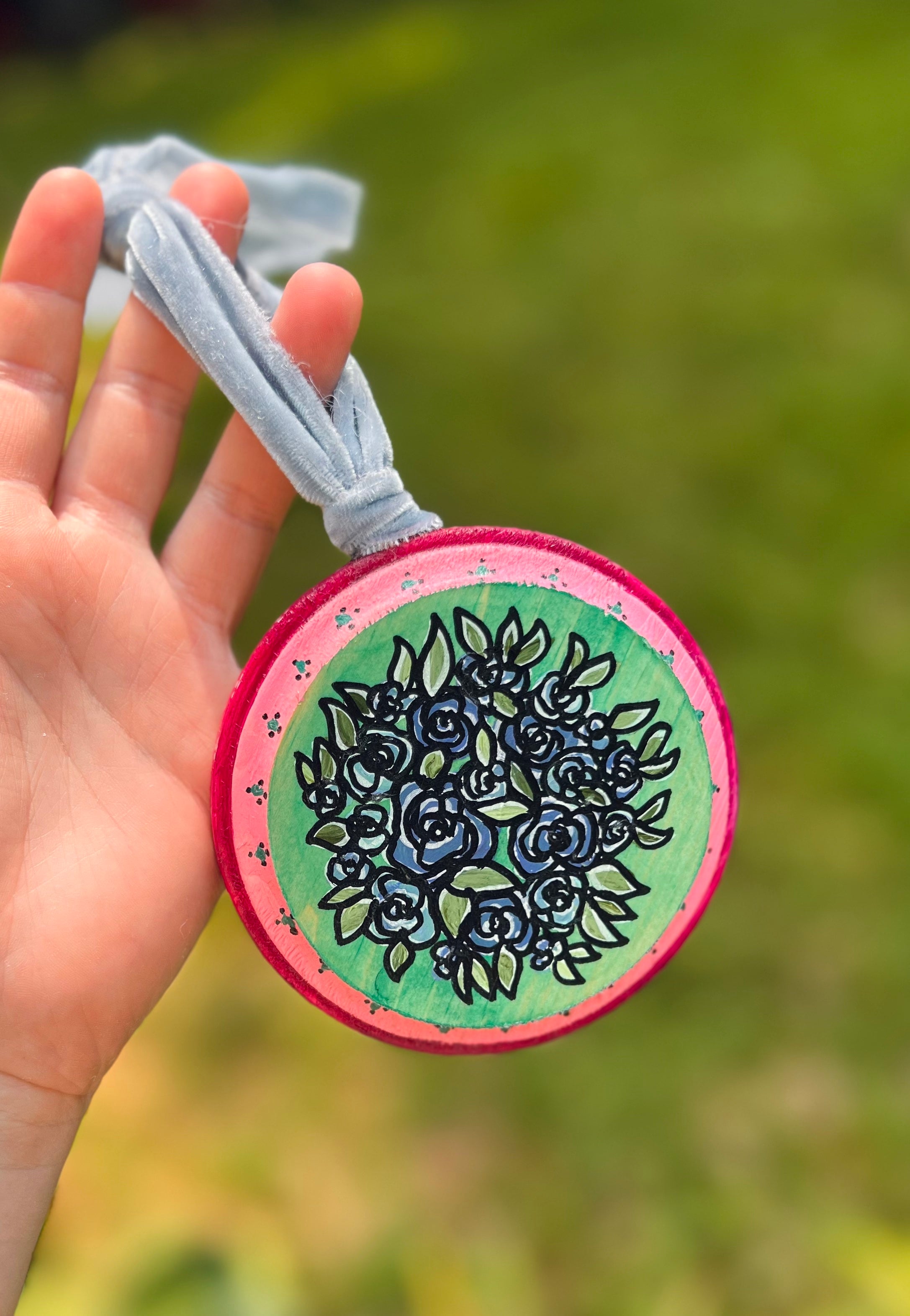 Finished with a matte clear coat and a soft velvet ribbon, these are ready for hanging and are perfect for adding personality to your space or for gifting to someone special!