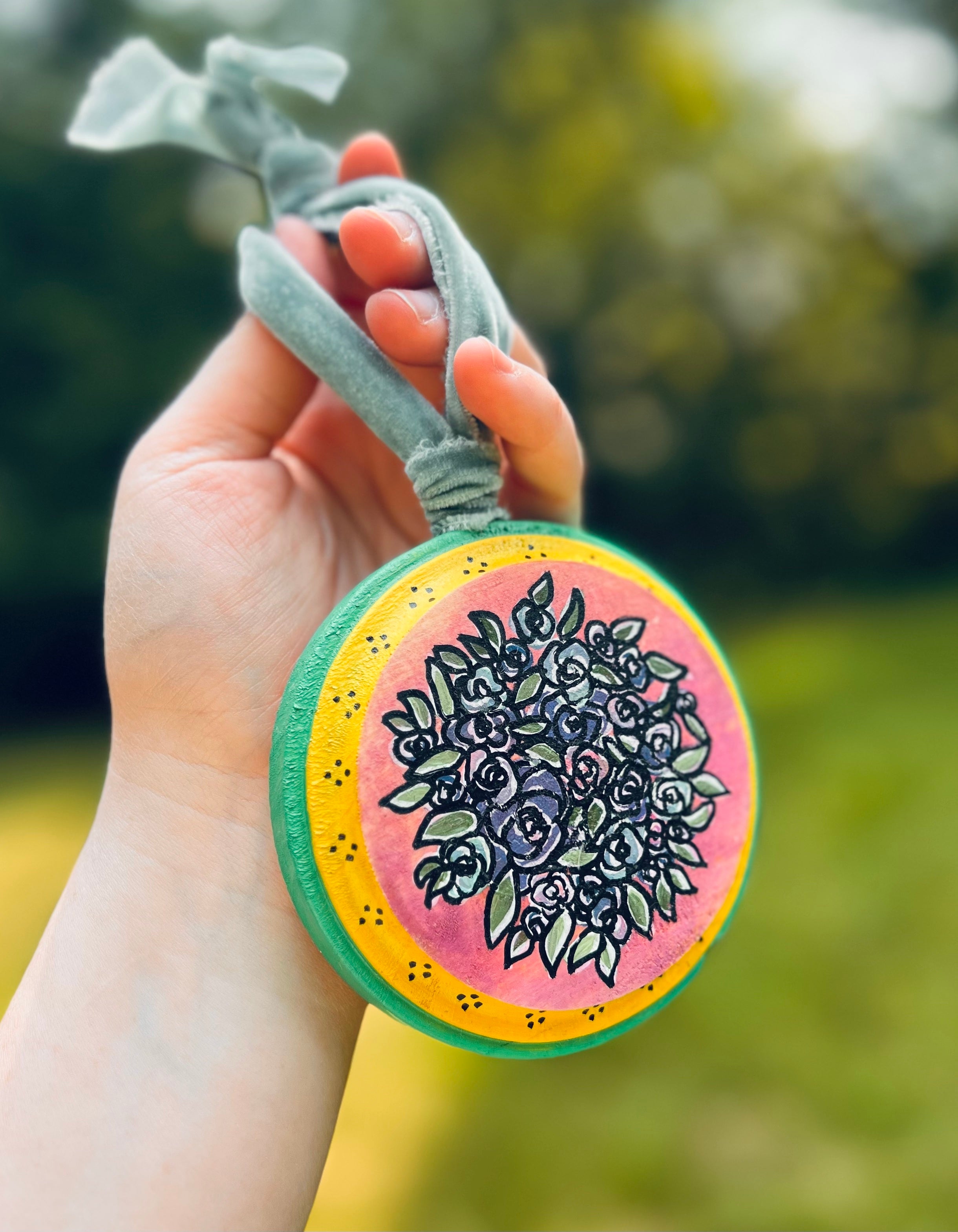 Add a splash of floral charm to your everyday •OR• holiday decor with our hand-painted wooden ornaments. Each piece is uniquely designed and crafted with an array of different colors, flowers, fruits, and warm designs... making them truly one of a kind!